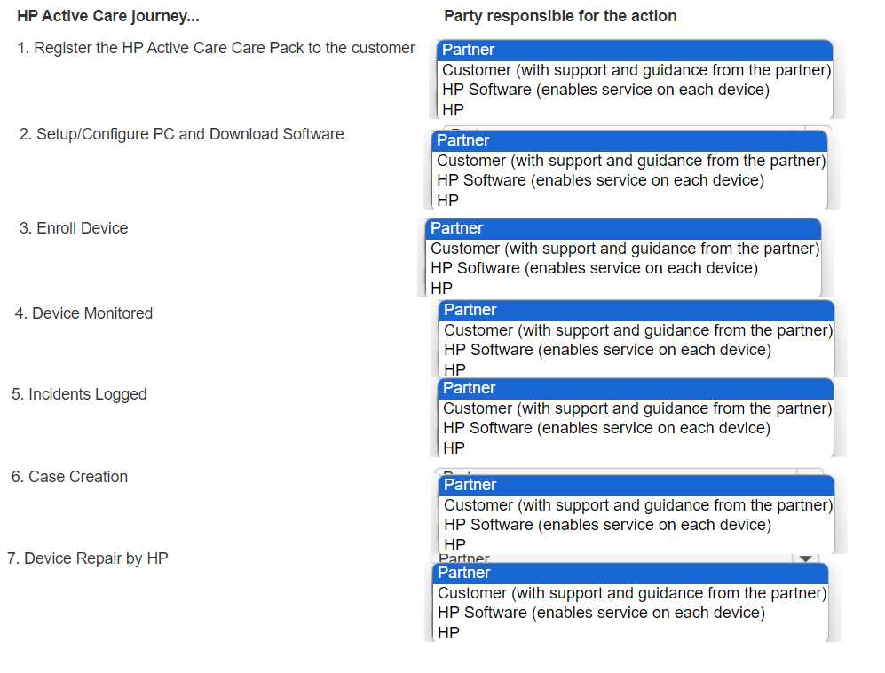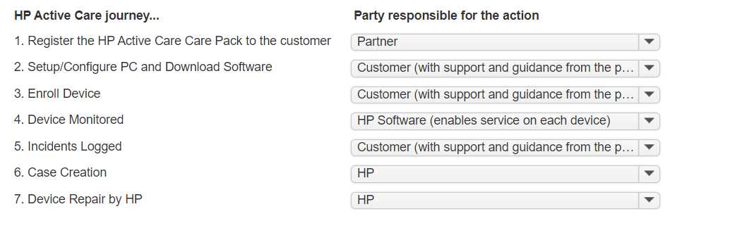 Here is the correct matching of the HP Active Care journey actions with the responsible parties: