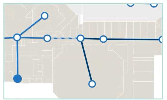 What does the solid blue circle indicate on the routing map shown in the exhibit?