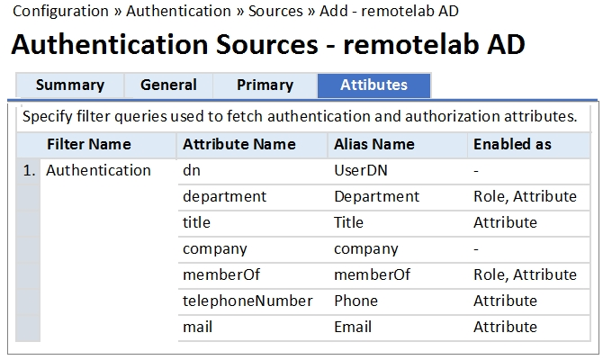 2. The attribute values of department, title, memberOf, telephoneNumber, and mail are directly applied as ClearPass.