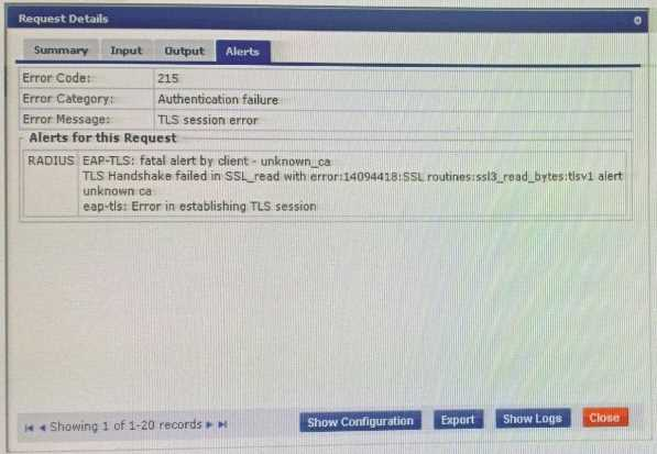 2. Check if the customer installed the internal PKl Root certificate presented by the ClearPass during the provisioning process.