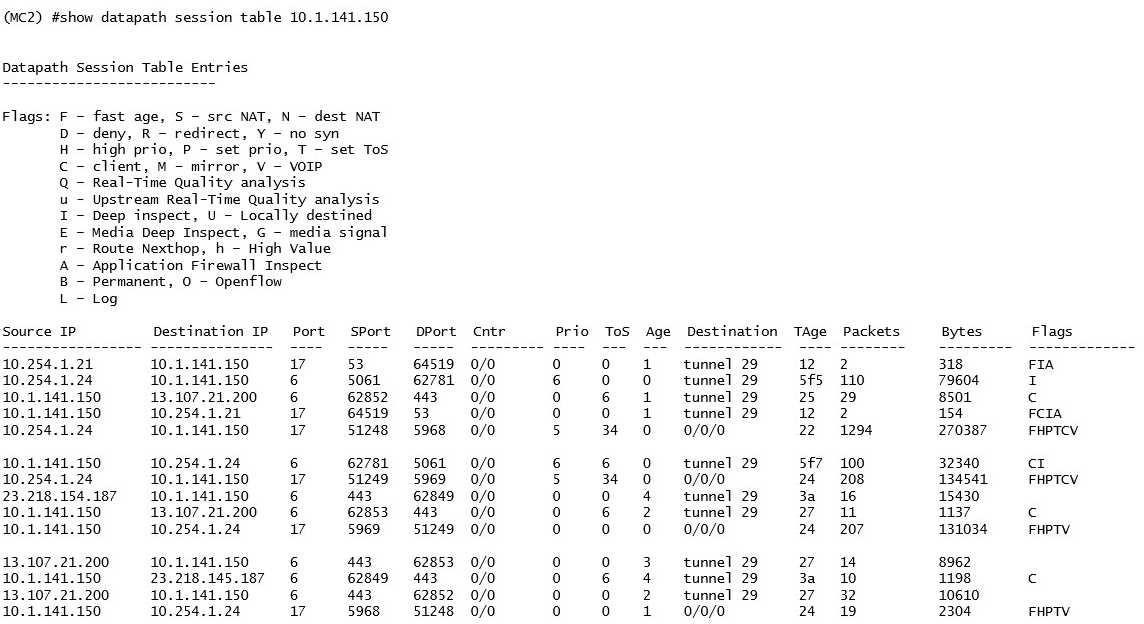 A network administrator deploys DSCP based prioritization in the entire wired network to improve voice quality for a SIP-based IP telephony system used by the company. However, users report that calls they make from WLAN have poor audio quality, while desktop phones do not experience the same problem. The network administrator makes a test call and looks in the datapath session table.