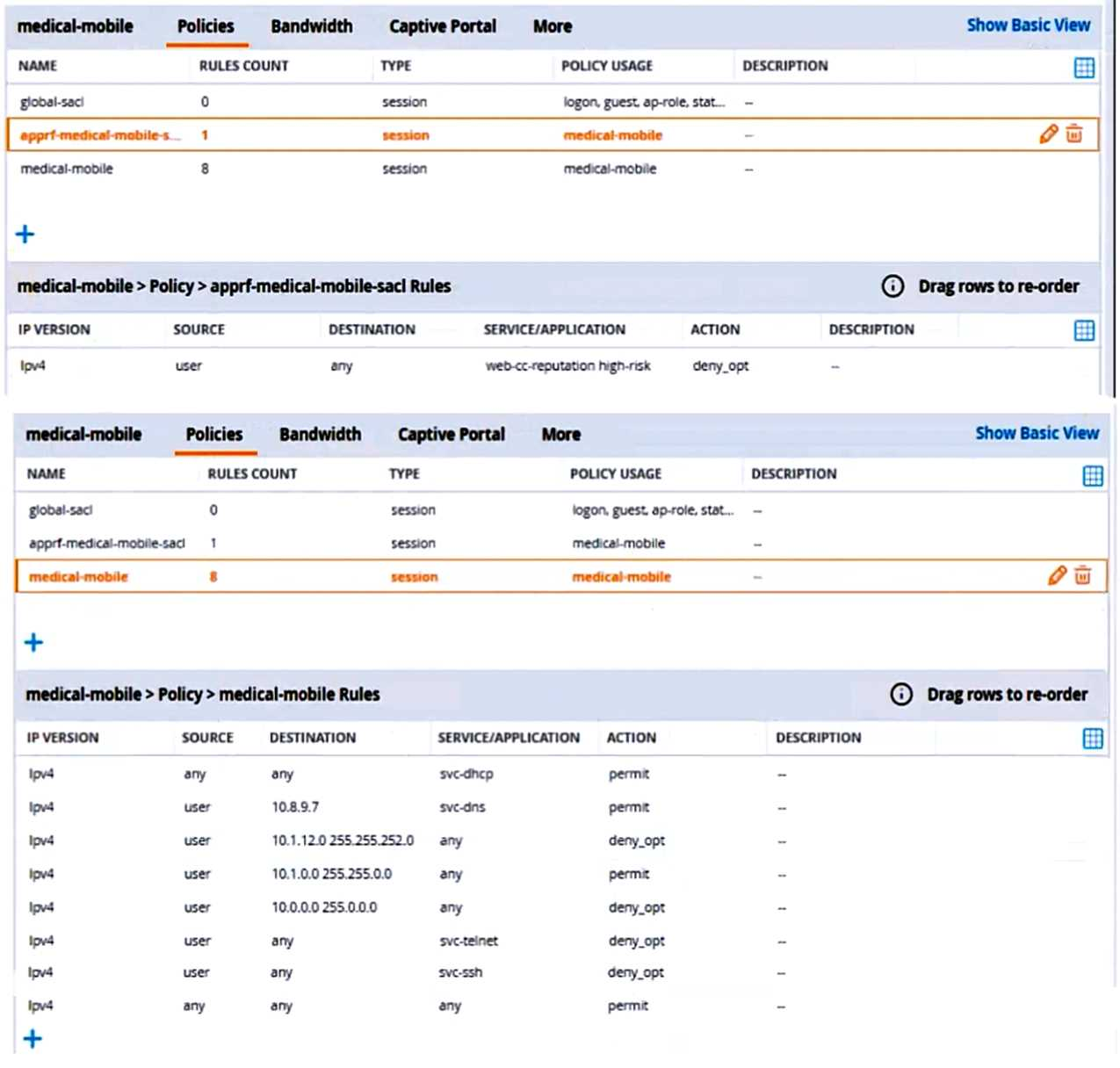 3. Move the rule in the "apprf-medical-mobile-sacl" policy between rules 7 and 8 in the "medical- mobile" policy.