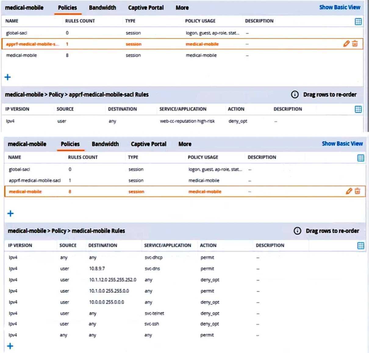 4. Move the rule in the "apprf-medical-mobile-sacl" policy between rules 7 and 8 in the "medical- mobile" policy.