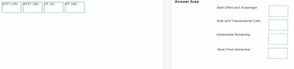Your customer is requesting a 4-ciass LAN queuing model tor QoS. Following best practices, match the PHB/DSCP values to the application types.