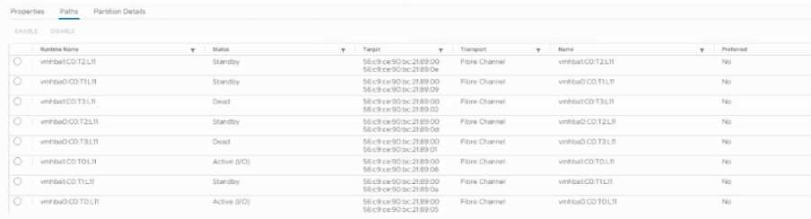 A & B: Having multiple active paths does not inherently reduce performance; in fact, MPIO load balances traffic. The issue here is path failures, not excessive active paths. Key Concept: MPIO pathing in HPE Peer Persistence and controller health.