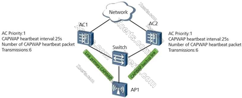 In the dual-link cold standby load balancing networking shown in the figure, API has gone online and set up the primary CAPWAP tunnel with AC1. Which of the following are the possible time points will an active/standby switchover occur under normal circumstances after the primary CAPWAP tunnel between API and AC1 is disconnected? (Multiple Choice)