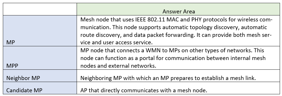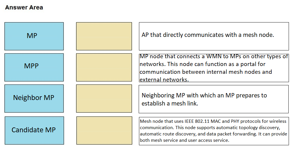 In mesh networking, APs have different roles. Drag the AP roles on the left to the role descriptions on the right.