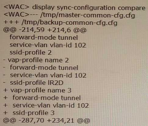 1. This command is used to check whether the public configurations on two WACs are consistent after wireless configuration synchronization.