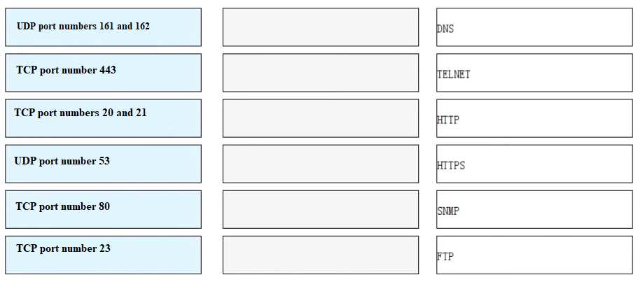 Match each of the following application layer service protocols with the correct transport layer protocols and port numbers.