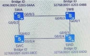 In the figure below, all switches have enabled the STP protocol, assuming that the path cost value of all ports is 200. What is the root path cost value contained in the configuration BPDU message received by the G0/0/4 port of $WD? () (Single-choice question)