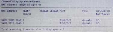 The MAC address table of a certain switch is shown in the figure. If the switch receives a data frame with a destination MAC of 5489-9811-0b49 from port Eth0/0/2, which of the following statements is correct? ()