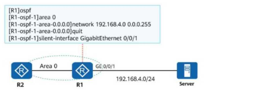 The silent-interface command is used to prevent OSPF from sending or receiving OSPF packets on the specified interface (GE 0/0/1). This disables OSPF adjacency establishment and stops route advertisement for that interface.