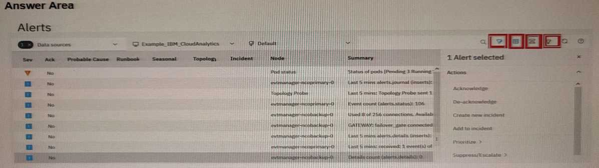 The following diagram shows the Alert Viewer of Event Manager. An administrator wants to define the Alert View Selection for a group of users so that only certain alert fields are shown. Click the icon needs to be selected by the administrator