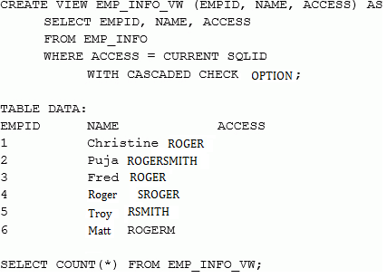 Given the following CREATE VIEW statement and sample data; your login id is “ROGER”.
