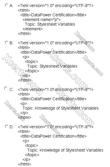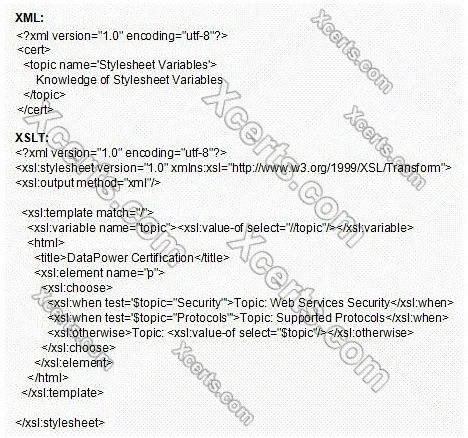 A solution implementer is writing a stylesheet that accepts input as shown in the followingexhibit:
