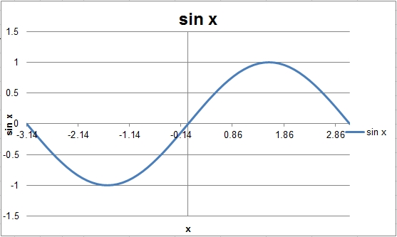 For -3.14 x +3.14, the graph of the function, sin x, is show below.