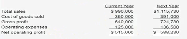 A company has prepared the following pro forma income statements. It plans to sell 10,000 units in the current year and 11.500 units next year.