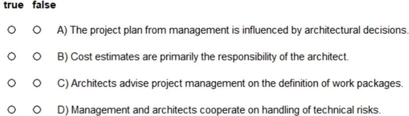 How does management and architects work together? Decide which statements are true and which are false. (Assign all answers.)