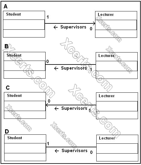 At a technical college, each student is supervised by a lecturer. Some lecturers supervise several students, some none. Which of the following class diagrams best shows this