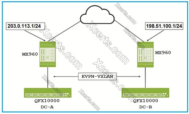 You are designing a Data Center Interconnect to transport VXLAN traffic between DC-A and DC-B.