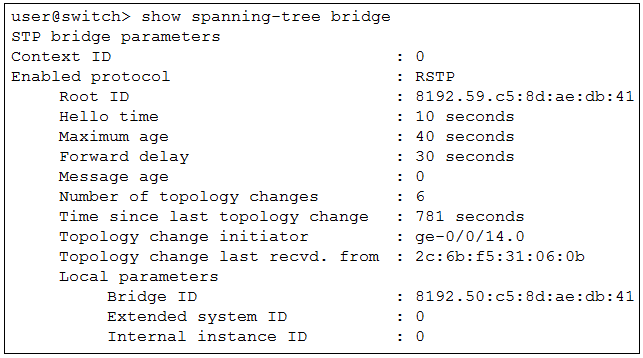 3. The root bridge is reachable using the ge-0/0/14 interface.