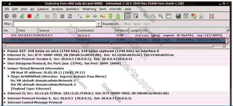 1. The ping traffic is initiated by a virtual machine with an IP address of 20.0.0.3.