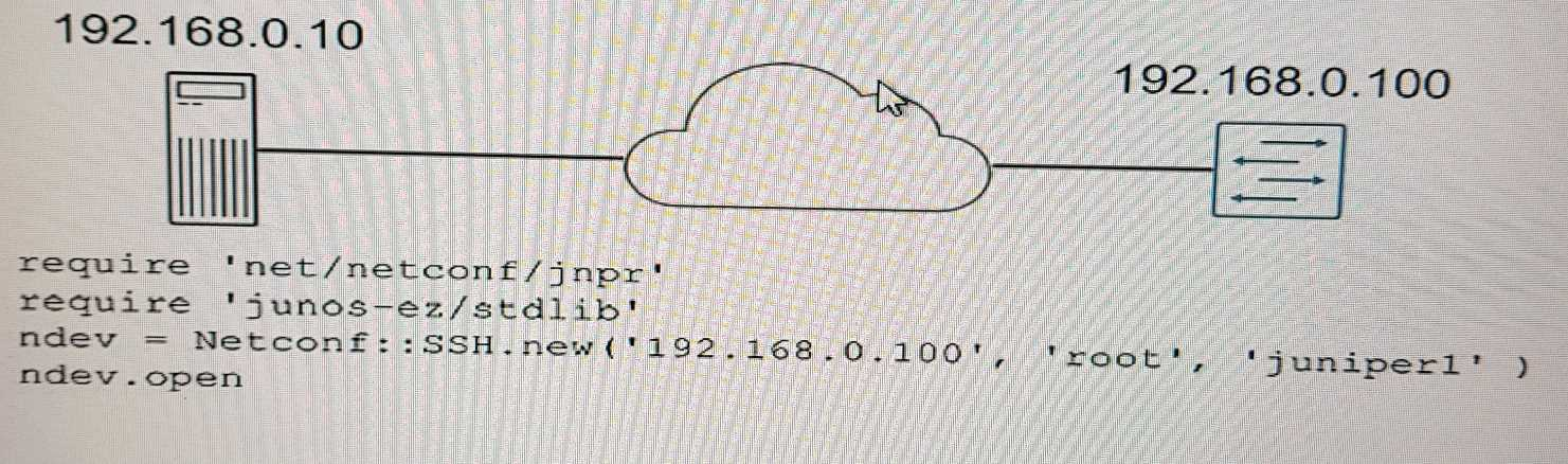 You are using RubyEZ to interact with a Junos device: however, you are not successfully connecting to the device.