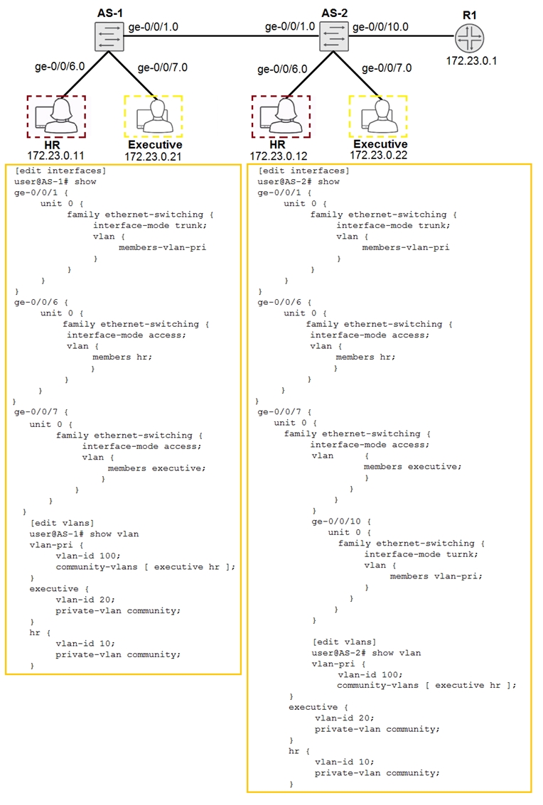 1. You must configure an isolation VLAN ID under the vlan-pri VLAN on the AS-2 switch.