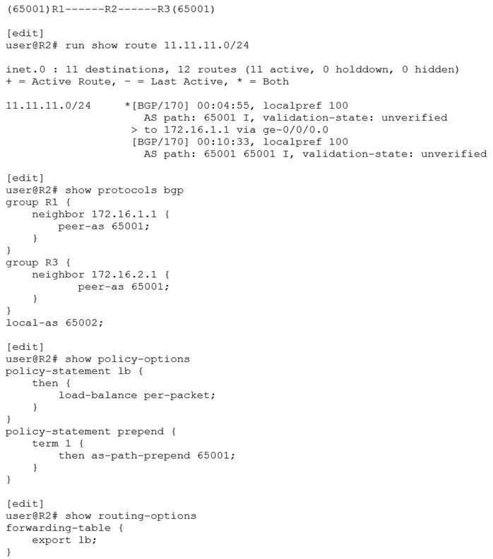 Referring to the exhibit, which two configuration changes will allow load balancing? (Choose two.)