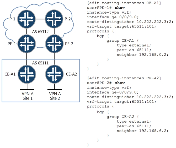 Referring to the exhibit, hosts in Site 1 and Site 2 are unable to communicate with each other through the Layer 3 VPN.