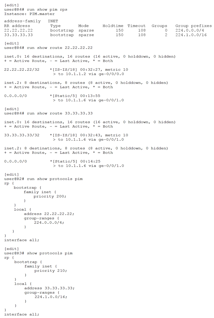 R4 is directly connected to both RPs (R2 and R3). R4 is currently sending all joins upstream to R3 but you want to load balance the joins between both RPs.