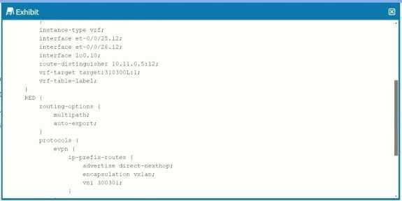 You have deployed a multitenant EVPN-VXLAN fabric. You must have the routes in the BLUE VRF show up in the RED VRF. In this scenario, how would you achieve this goal?