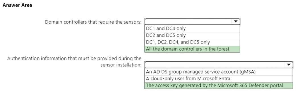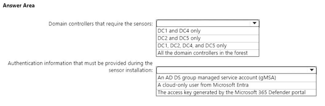 You need to install the sensors on the minimum number of domain controllers. The solution must ensure that Defender for Identity will detect all the security risks in both the domains.