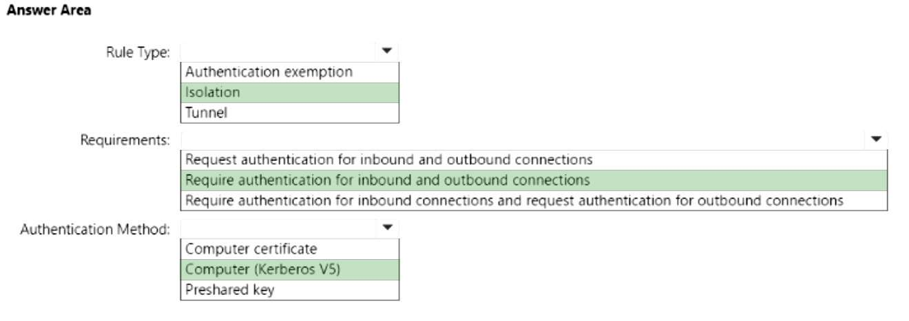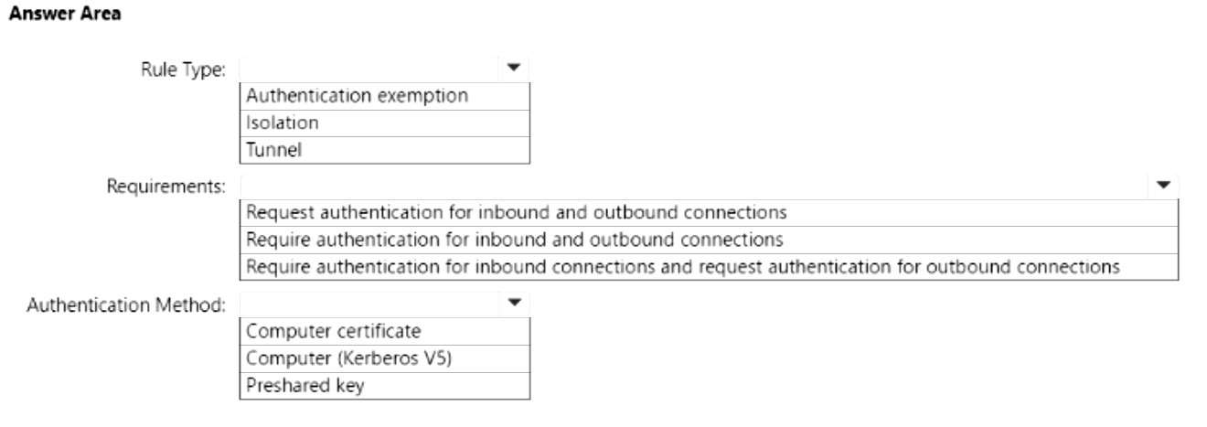 On Server3, Windows Defender Firewall has a connection security rule that has the following settings: