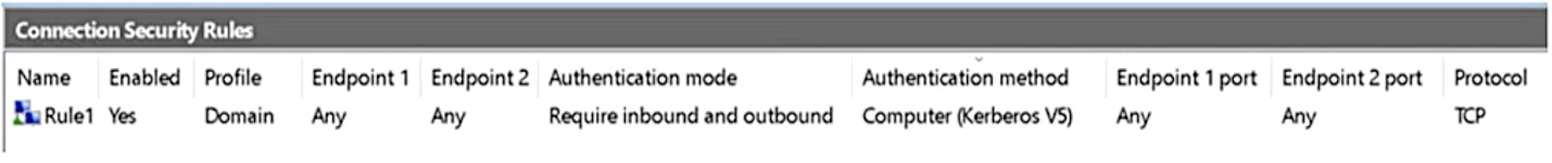 On Server1, Windows Defender Firewall has a connection security rule that has the following settings: