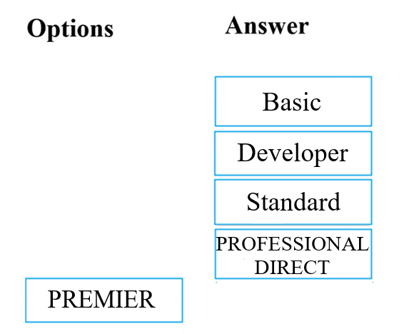 Which of the following are support plans that will allow this? Answer by dragging the correct option from the list to the answer area.