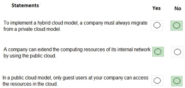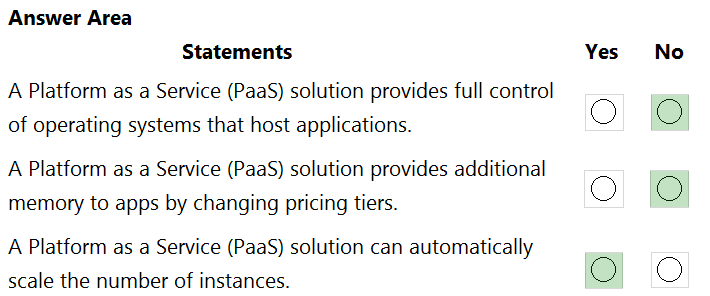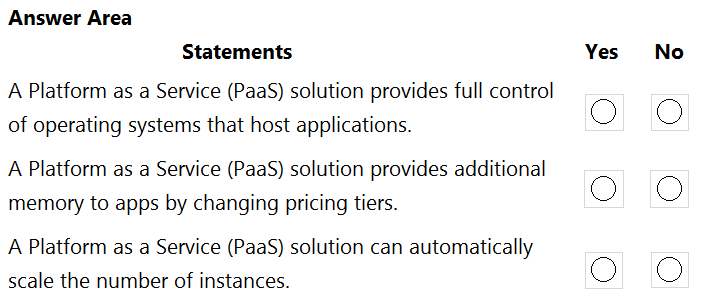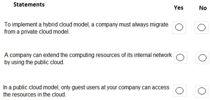 For each of the following statements, select Yes if the statement is true. Otherwise, select No.