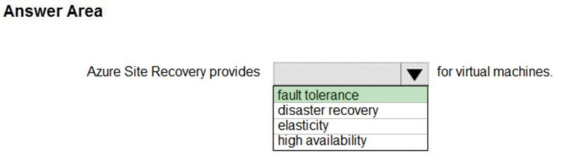 question #50 and question #81 are exactly the same questions, azure site recovery provides________for virtual machines. the first says that it is fault tolerance is the answer and second says disater recovery. from my research, it says it should be disaster recovery. can anybody explain to me why? thank you