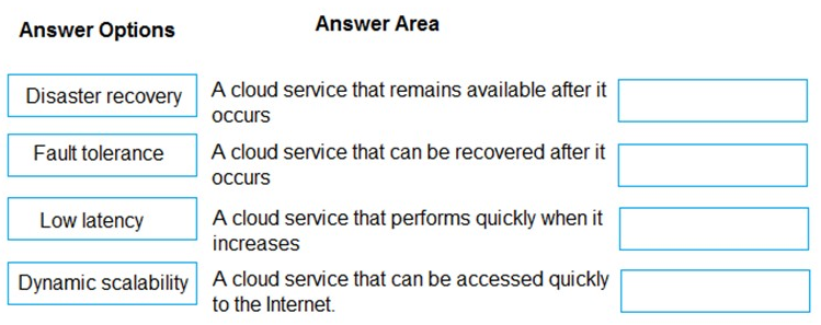 Instructions: To answer, drag the appropriate benefit from the column on the left to its description on the right. Each benefit may be used once, more than once, or not at all.