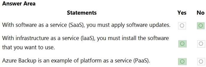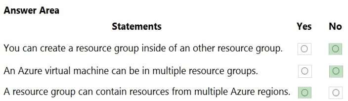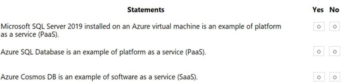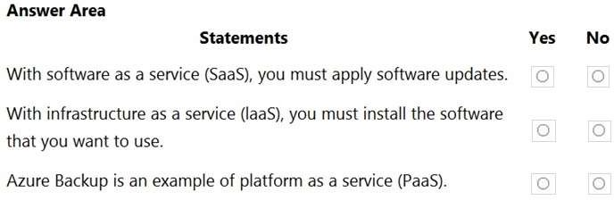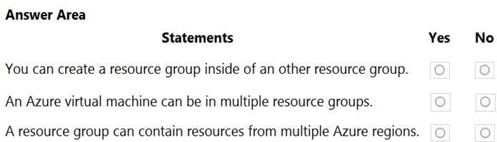 For each of the following statements, select Yes if the statement is true. Otherwise, select No.