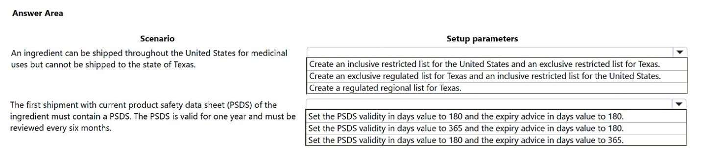 A company produces homeopathic lotions for pain relief and uses Dynamics 365 Supply Chain Management.