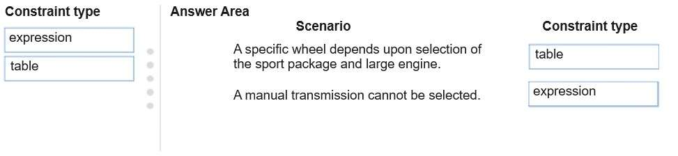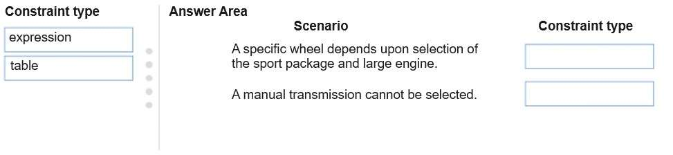 Which constraint type should you use? To answer, drag the appropriate constraint types to the correct scenarios. Each constraint type may be used once, more than once, or not at all. You may need to drag the split bar between panes or scroll to view content.