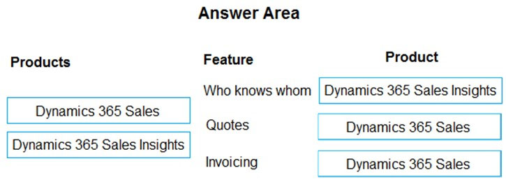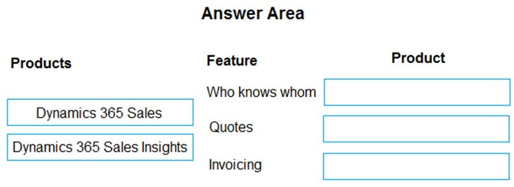 Instructions: To answer, drag the appropriate product from the column on the left to its feature on the right. Each product may be used once, more than once, or not at all.