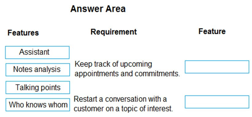 Which feature should you recommend? To answer, drag the appropriate features to the correct requirements. Each feature may be used once, more than once, or not at all. You may need to drag the split bar between panes or scroll to view content.