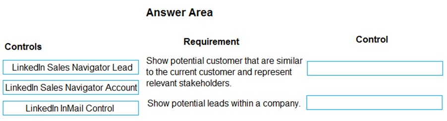 Which controls should you use? To answer, drag the appropriate controls to the correct requirement. Each control may be used once, more than once, or not at all. You may need to drag the split bar between panes or scroll to view content.