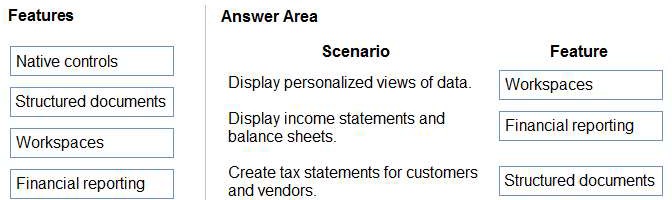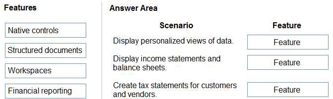Which feature should you recommend? To answer, drag the appropriate features to the correct scenarios. Each feature may be used once, more than once, or not at all. You may need to drag the split bar between panes or scroll to view content.