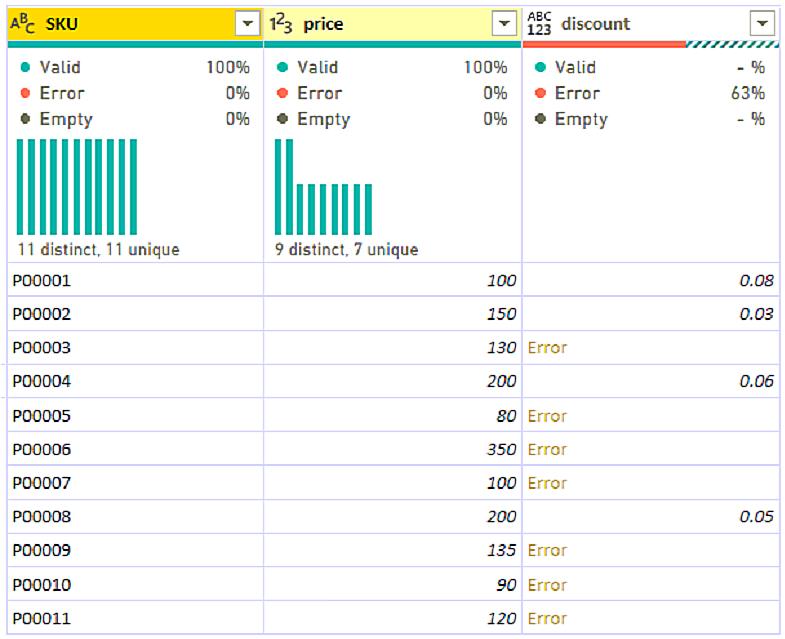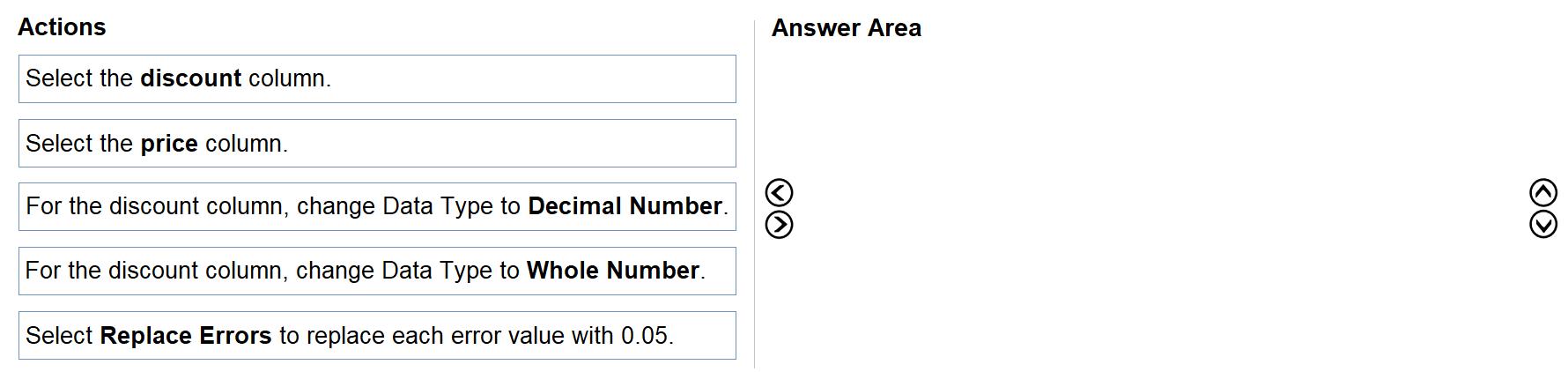 You need to clean and transform the query so that all the rows of data are maintained, and error values in the discount column are replaced with a discount of 0.05. The solution must minimize administrative effort.