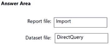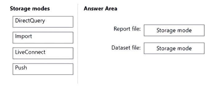 Which storage mode should you use for the report file and the dataset file? To answer, drag the appropriate modes to the correct files. Each mode may be used once, more than once, or not at all. You may need to drag the split bar between panes or scroll to view content.