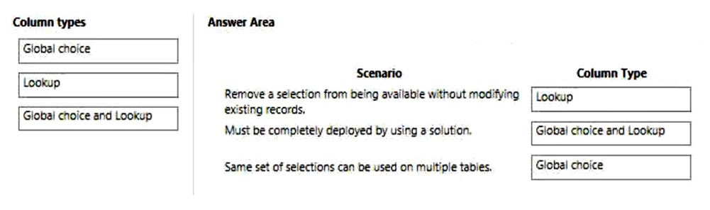 Which column type should you use? To answer, drag the appropriate column types to the correct scenarios. Each column type may be used once, more than once, or not at all. You may need to drag the split bar between panes or scroll to view content.