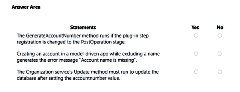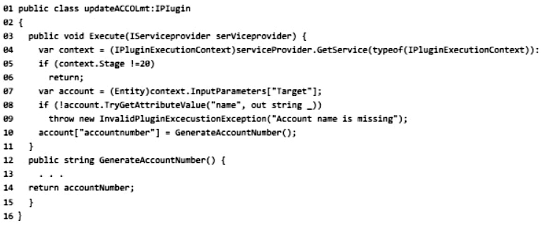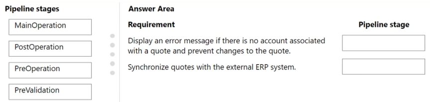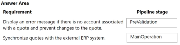 You are developing a Power Apps app for a company. The app will interact with the company's enterprise resource planning (ERP) system. The app allows users to create quotes for customers. You are creating a plug-in for the app.